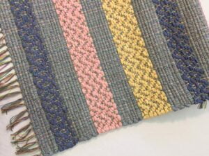 Are you bored with just weaving cloth strip rugs with plain weave? Many other threadings are suitable for rag rugs, such as monk’s belt, Ms and Os, double-face twill, overshot, summer and winter, undulation twill and crackle.
