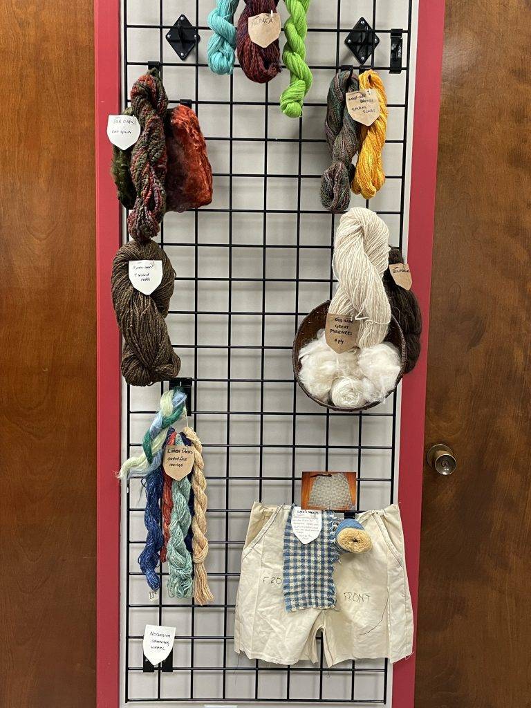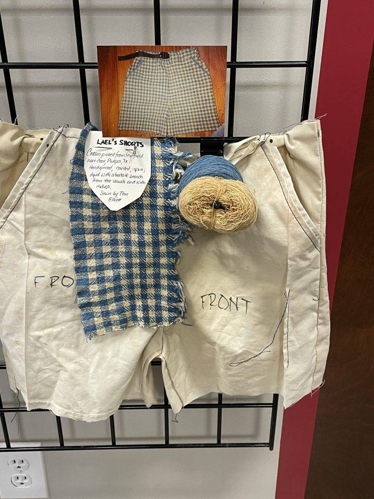 January display on Spinning at the Guild House, by Connie Elliott. Really lovely work. The detail is of a pair of hand spun shorts!