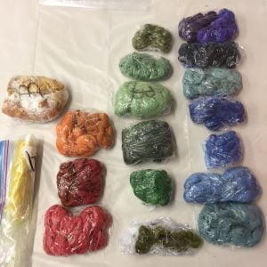 As has been said many times before at dyeing workshops, your results may not be what you expected but nevertheless they are beautiful. Paula’s well documented photos are below and she says, ” I didn’t quite do what I had planned but got what I needed instead……one of the great aspects of a workshop format.”