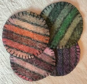 A sneak peek at Peg’s multi colored coasters which will be at the Art for the Home, Body and Soul annual sale at the Guild House.