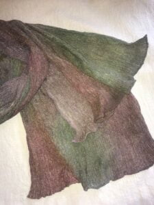A sneak peek at Peg’s dyed shawl which will be at the Art for the Home, Body and Soul annual sale at the Guild House.
