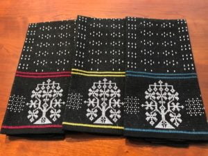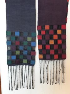Handwoven scarves, towels, and table runners by Laura Viada can be found