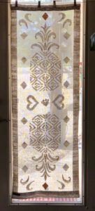 Ta-Da! Here’s a project woven after the Transparency workshop taught by Laura Viada recently. Jill Frazior finished this panel for her front door after the workshop was over. She says she has ordered a “proper” hanging device.